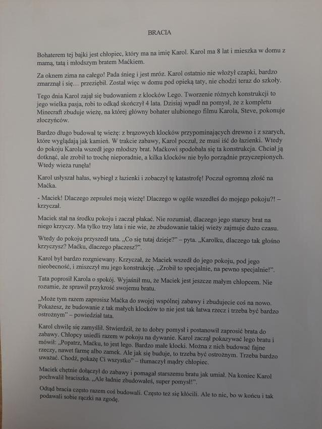 Wyniki konkursu plastyczno- literackiego -Emocje zaklęte w bajce